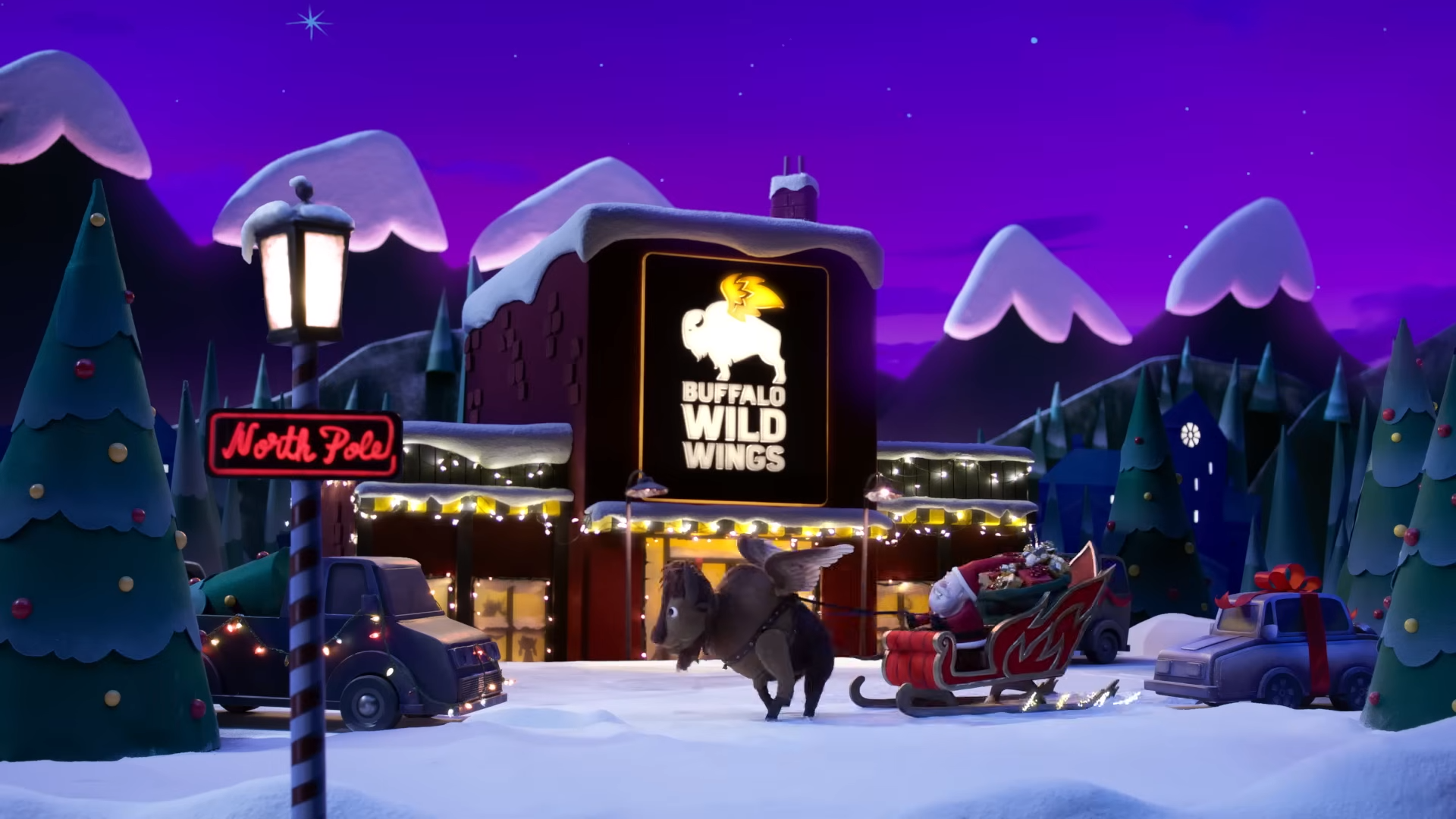 At the center of the campaign is Hank, Buffalo Wild Wings’ long-running animated mascot, reimagined in a holiday setting that draws heavily from mid-century Christmas television specials. The spot embraces exaggerated performance, tactile timing, and stylized movement rather than hyper-realism, evoking the warmth and charm traditionally associated with classic stop-motion holiday programming.
