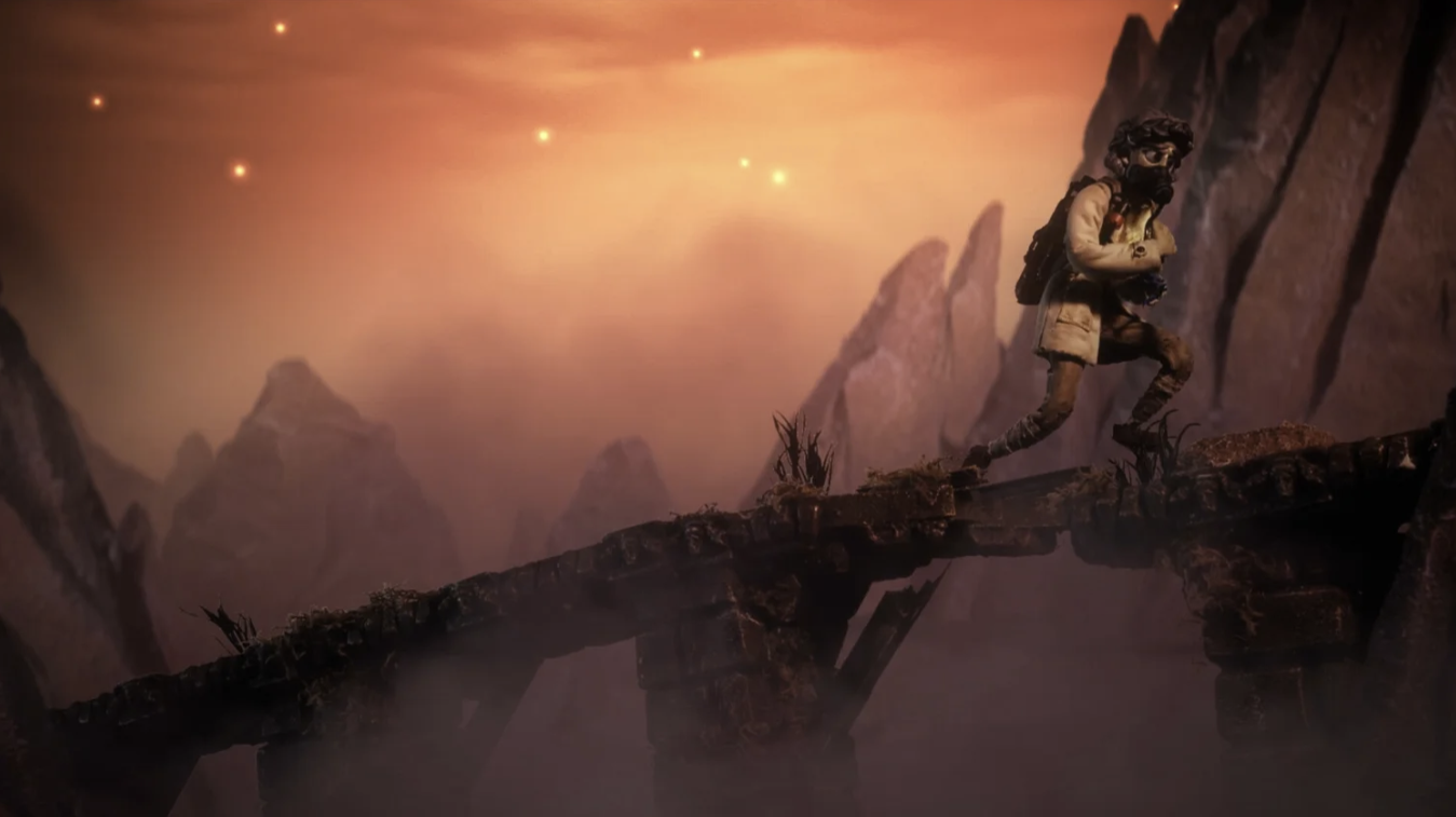 At its core, The Forbidden Zone follows Dumont, a solitary botanist living high in the mountains above a poisoned world blanketed by a deadly fog. His existence revolves around nurturing a single potted plant—one of the last remnants of life in a desolate landscape. Dumont’s isolated routine is abruptly disrupted when a mysterious glowing creature crashes just outside his refuge. Rescuing the creature forces him into the toxic wilderness he has long feared, setting up a story defined by risk, sacrifice, and the quiet bravery of leaving safety behind.