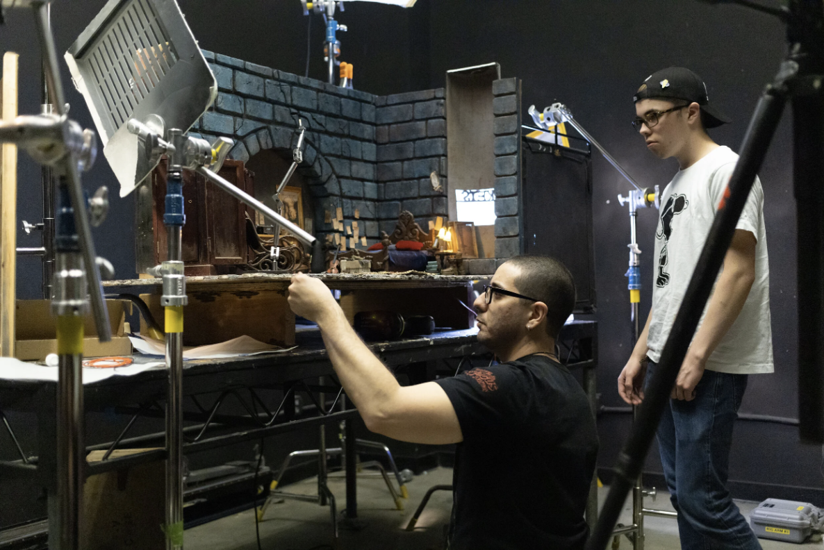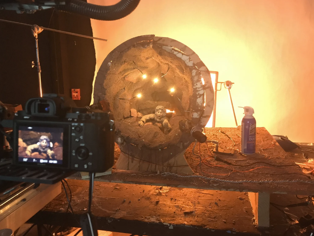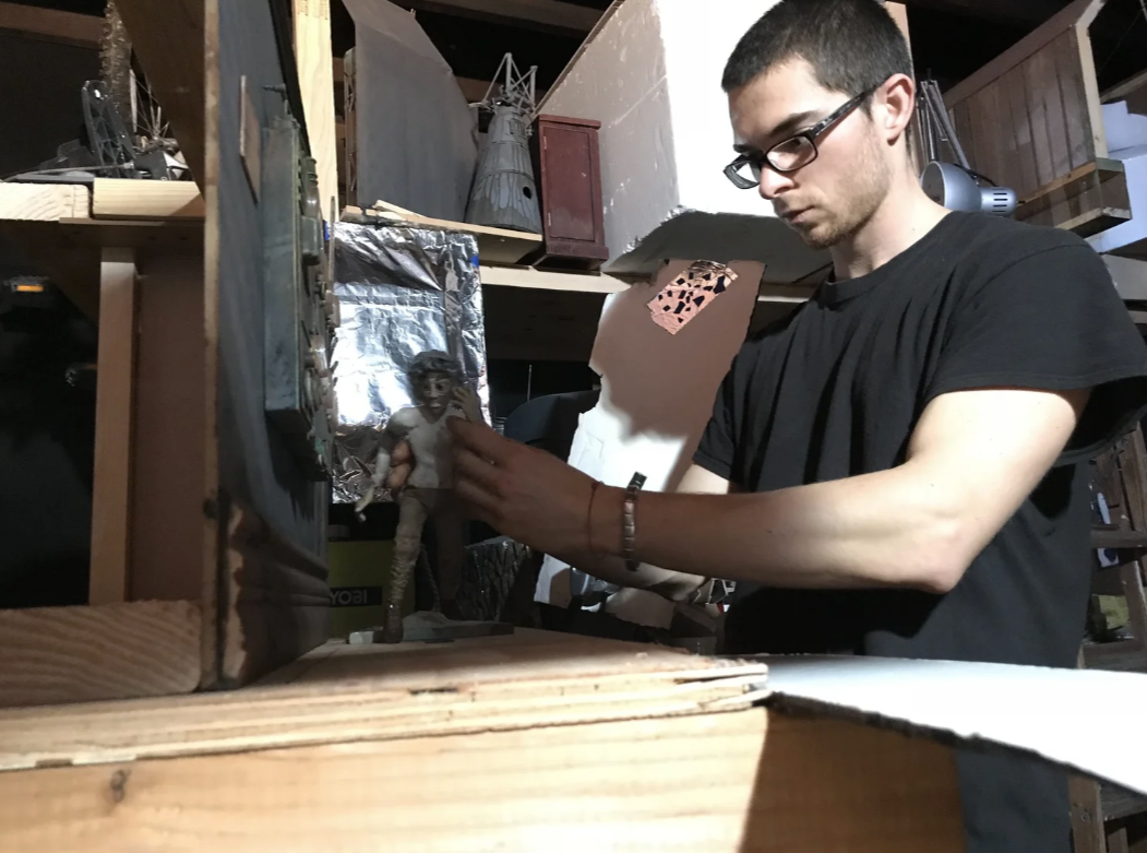 Tolchinsky developed the project during his time at CalArts, later continuing production at home when COVID-19 shut down campus access. The filmmaker’s background in puppetry, acting, and professional stop-motion fabrication is evident throughout the short. Detailed miniatures, expressive puppet animation, and controlled atmospheric lighting give the world a lived-in physicality seldom achieved on small-scale indie productions.