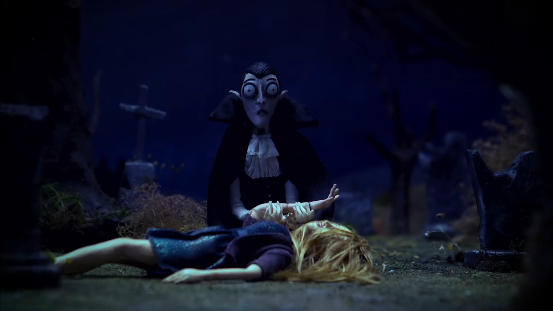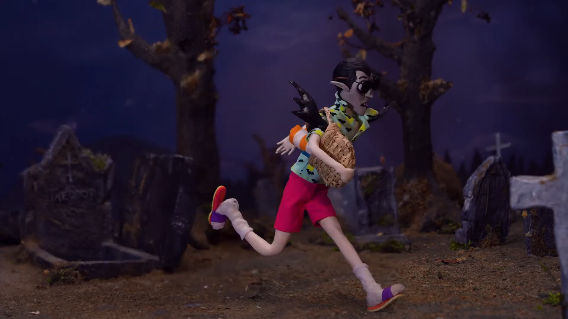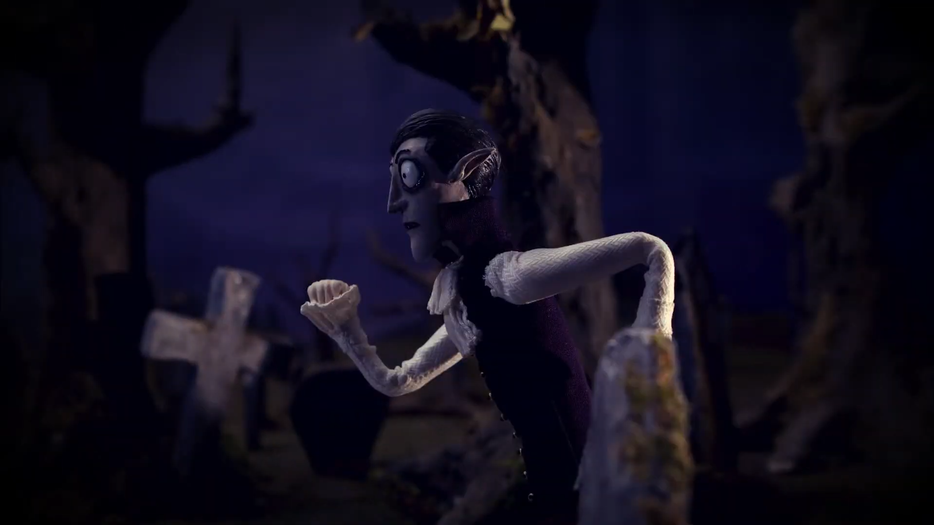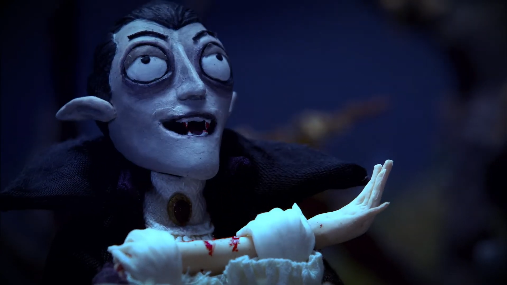 The premise is simple but highly effective. Theodor, a traditional but hopelessly scatterbrained vampire, begins his night with a leisurely midnight snack. The filmmakers immediately establish his personality through expressive animation, theatrical posing, and richly textured sets. He’s refined, dramatic, and just a little oblivious. As the sky begins to lighten, Theodor suddenly realizes the danger he’s in, and the film shifts into a breathless chase sequence that highlights both the comedy and physicality of stop-motion animation.